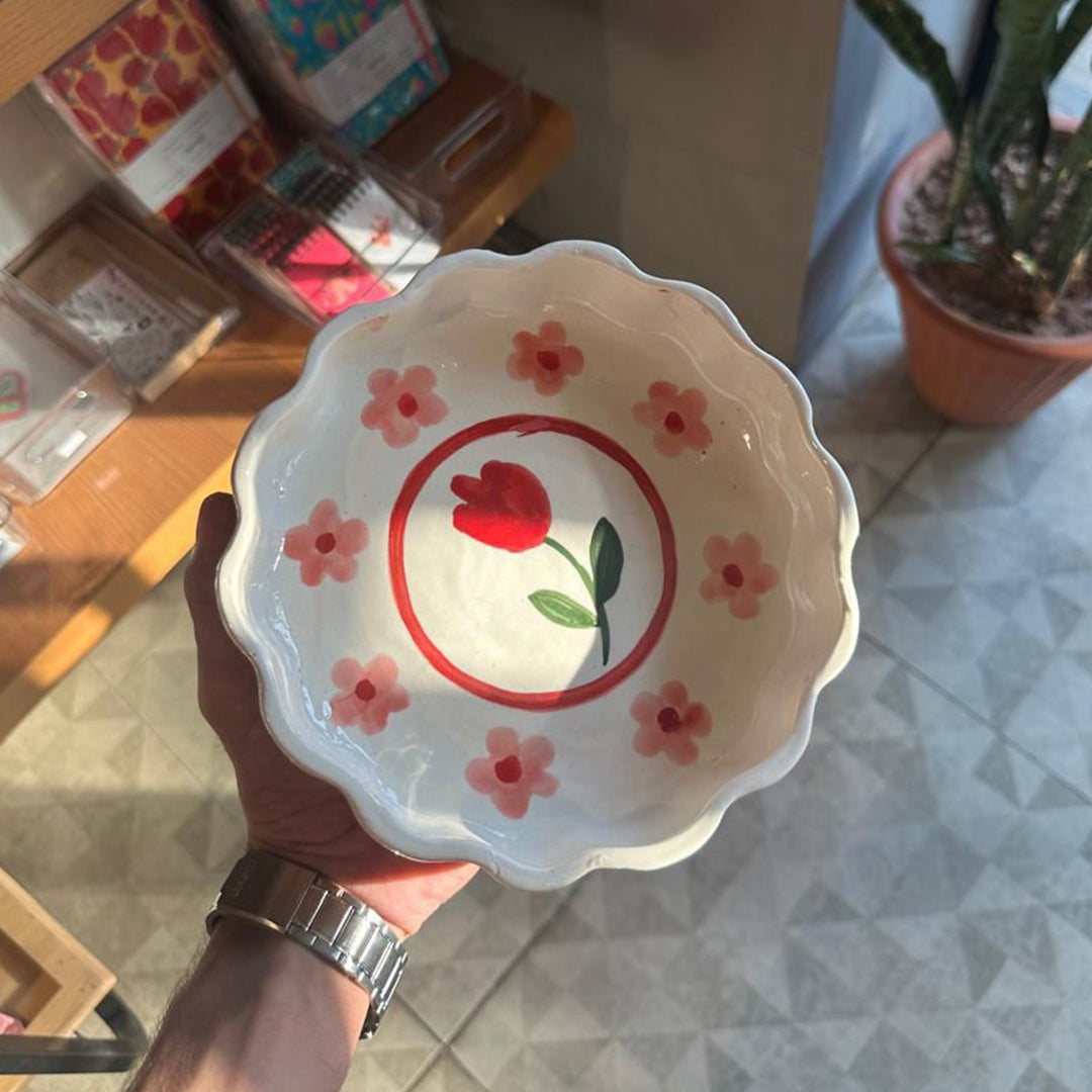 Hand-painted in blush florals, this deep plate is made for you to enjoy your meals in. Every artsy girlie has one, get yours now <3