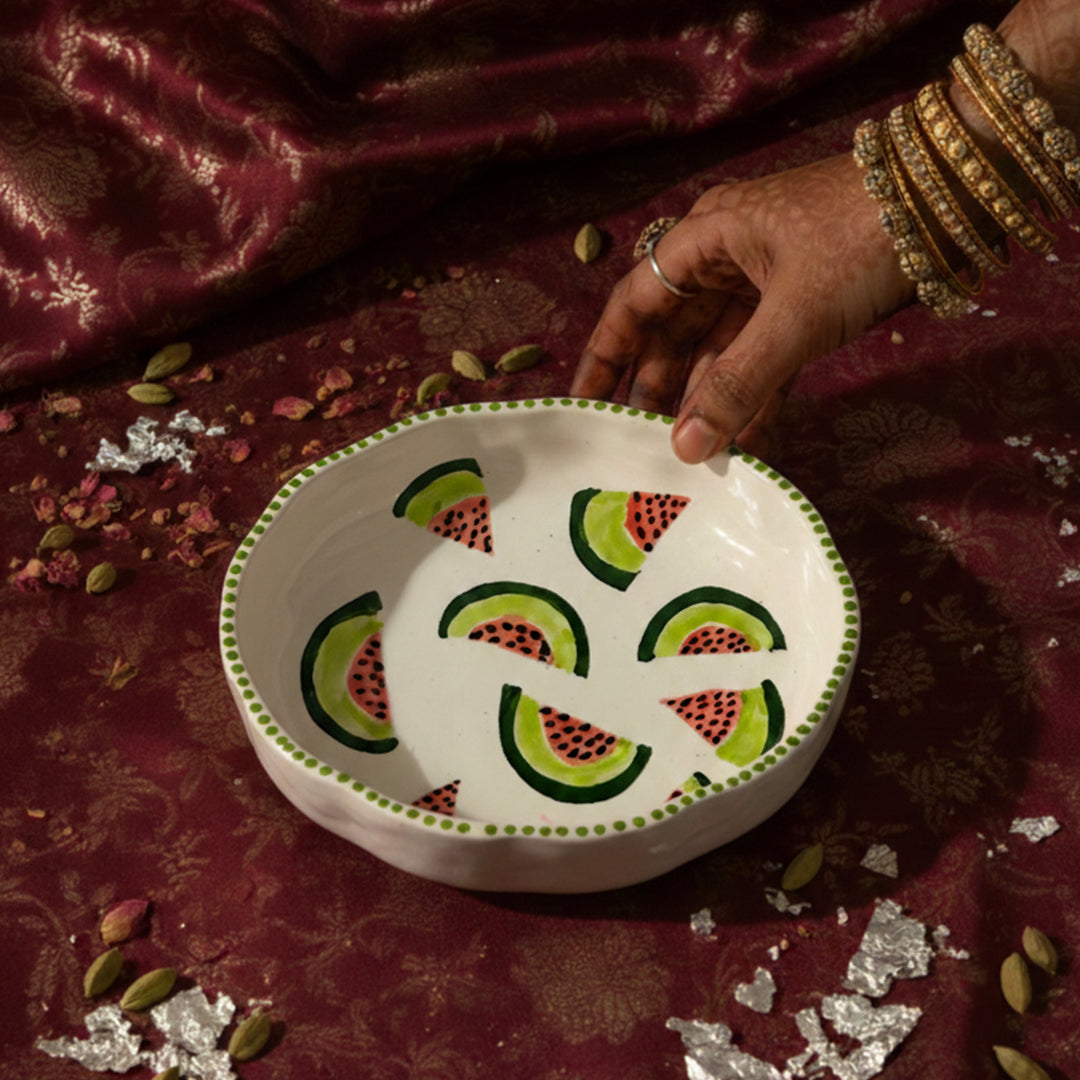 Hand-painted watermelons for the win! Girlie, this deep plate is made for you to enjoy your meals in. Every artsy girlie has one, get yours now <3