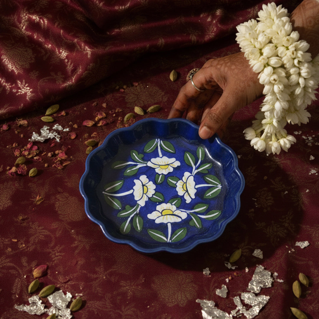 Hand-painted in blue flowers, this deep plate is made for you to enjoy your meals in. Every girlie has one, get yours now <3